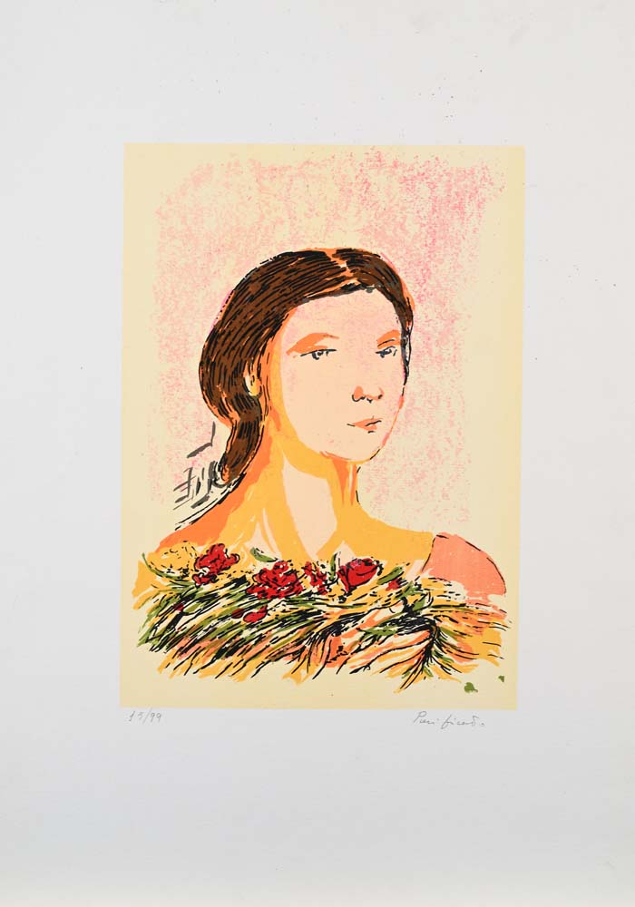 Volto di donna Firma e numerazione "Purificato 15/99". Litografia cm 70x50
