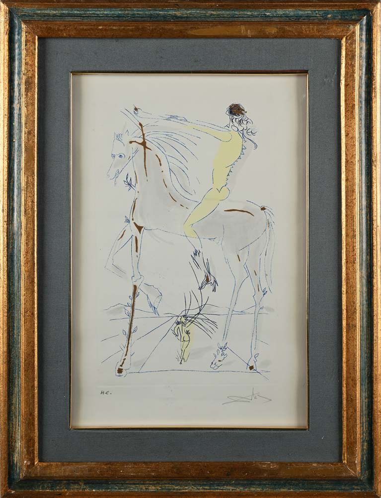 Salvador Dalì (Figueres 1904 - Figueres 1989) Cavaliere a cavallo Firma e...