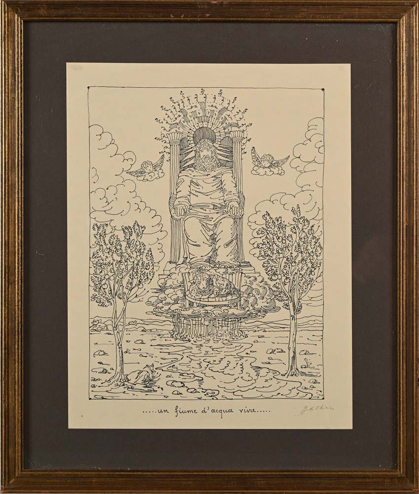 da L'Apocalisse "...un fiume d'acqua viva..." 1940 Firma in basso a destra "G. De Chirico" Litografia cm 34x27 - in cornice cm 46x39