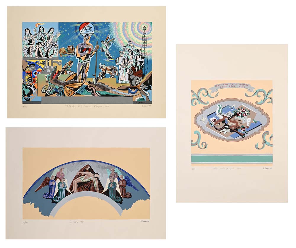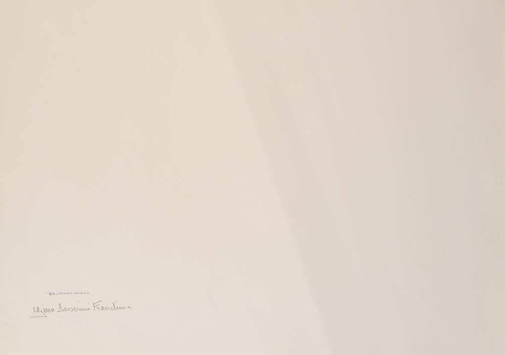 Una ricerca di Radici - 3 serigrafie d'aprés 1983 Cartella di 3 serigrafie completa di custodia originale e testo critico di Maurizio Fagiolo dell'Arco. Realizzata nel 1983 presso la Stamperia d'Arte Grafiser di Roma, ogni serigrafia misura cm 49x69 ed è firmata al verso da "Gina Severini Franchina", numerata a matita sul fronte 62/250 e titolata al centro in basso a matita.