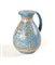 Brocca in terracotta smaltata e dipinta Sullo sfondo azzurro emergono decori floreali, animali e geometrici nei toni del rosa, arancio, verde e viola. Sotto la base firma "V. Pinto, Vietri, Italia" cm h 26x20 circa