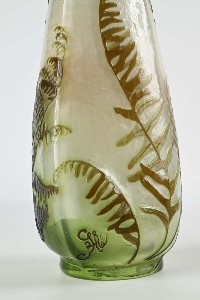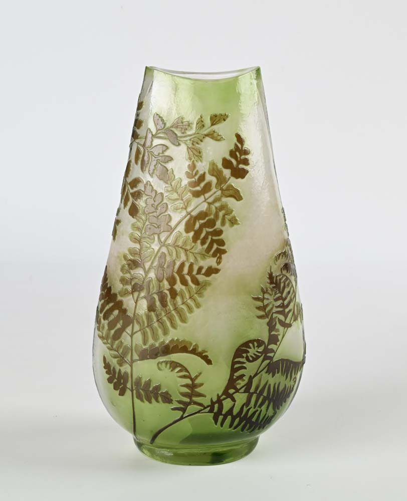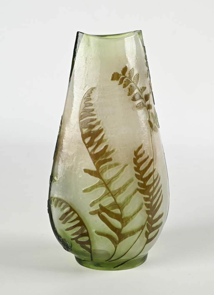 () Vaso in vetro verde, produzione Gallè, Francia Decorato con motivi...