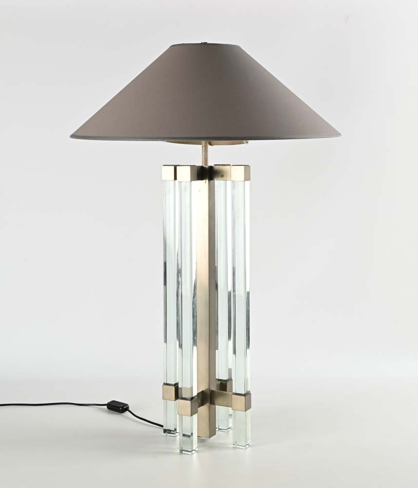 Lampada da tavolo Struttura in vetro cm h81x55⌀ paralume; la struttura in cristallo misura cm h56x19x19