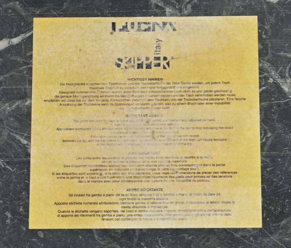 Tavolino da salotto modello Eros, produzione Skipper Marmo nero Maquina Etichetta del produttore sotto la base cm h 75x45x65