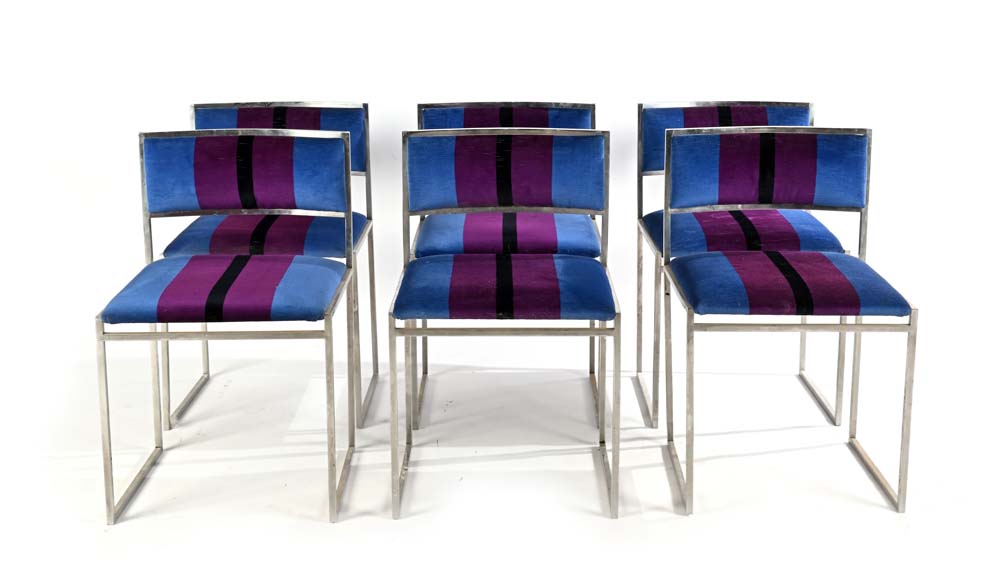 Sei sedie per Kill International Anni '60 Struttura in acciaio cromato e rivestimento in tessuto cm 78x48x41