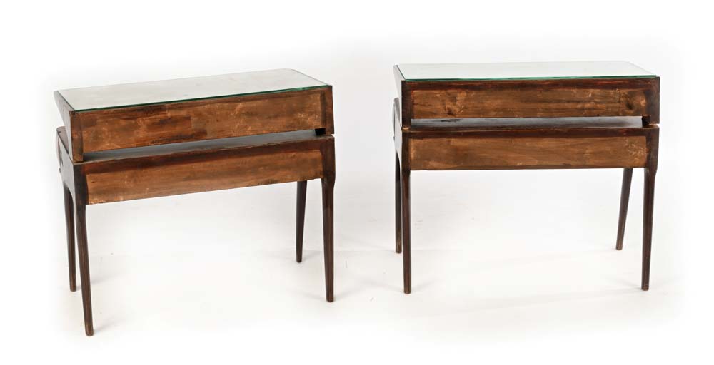 Due comodini Anni '50 Struttura in legno, maniglie in ottone e marmo, piano in cristallo cm 51x57x32