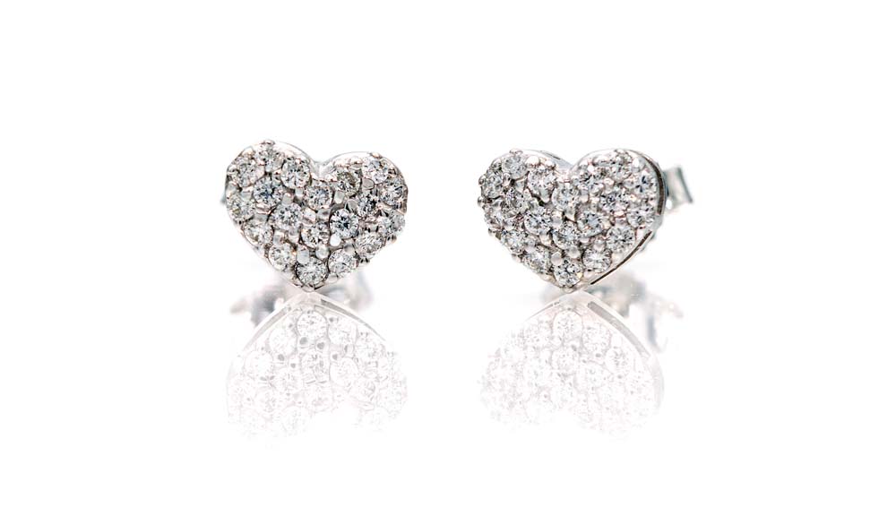 Coppia di orecchini a cuore in oro e brillanti Oro bianco 750/000. Peso complessivo gr. 1,90