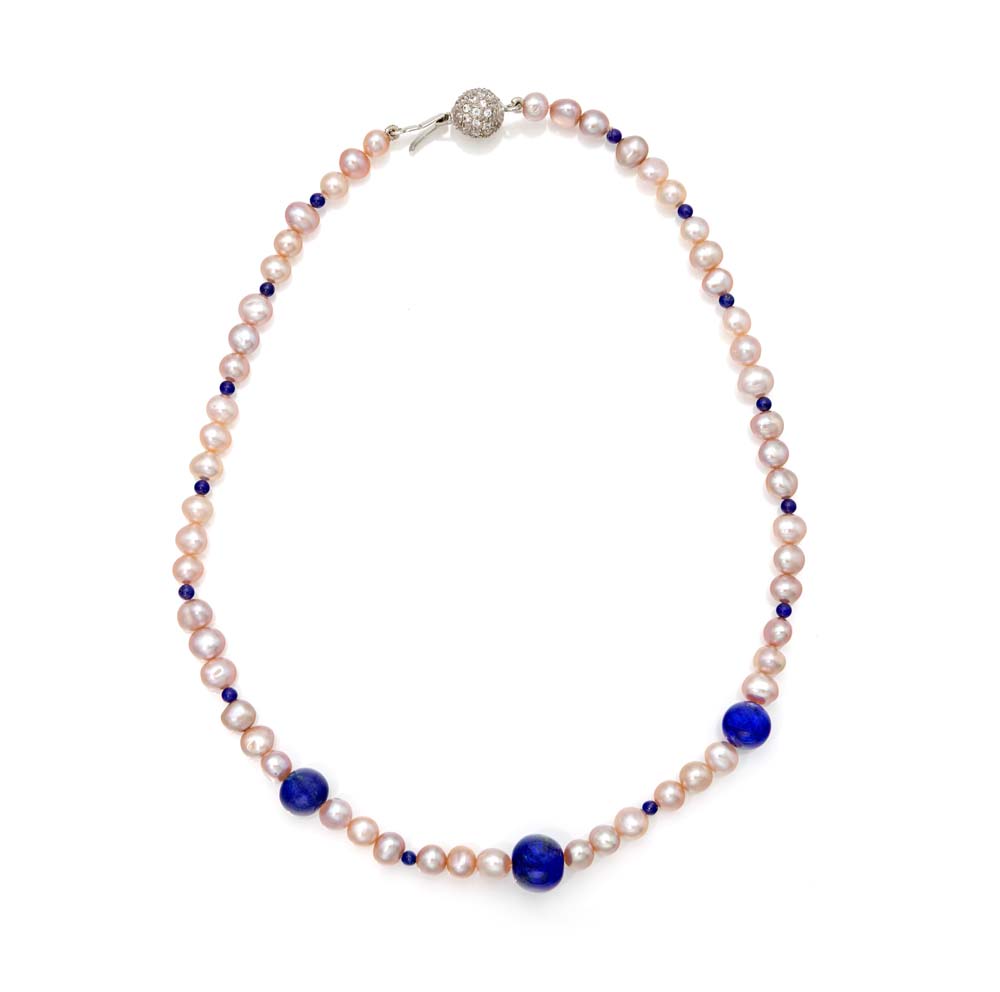 Lotto 160 | Collana in perle, lapislazzuli e oro Chiusura in oro bianco 750/000....