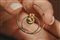 dorati, l'uno con sfera, l'altro con due pietre rotonde sfaccettate di colore viola, chiusura con perno e farfalla, firmati e punzonati.