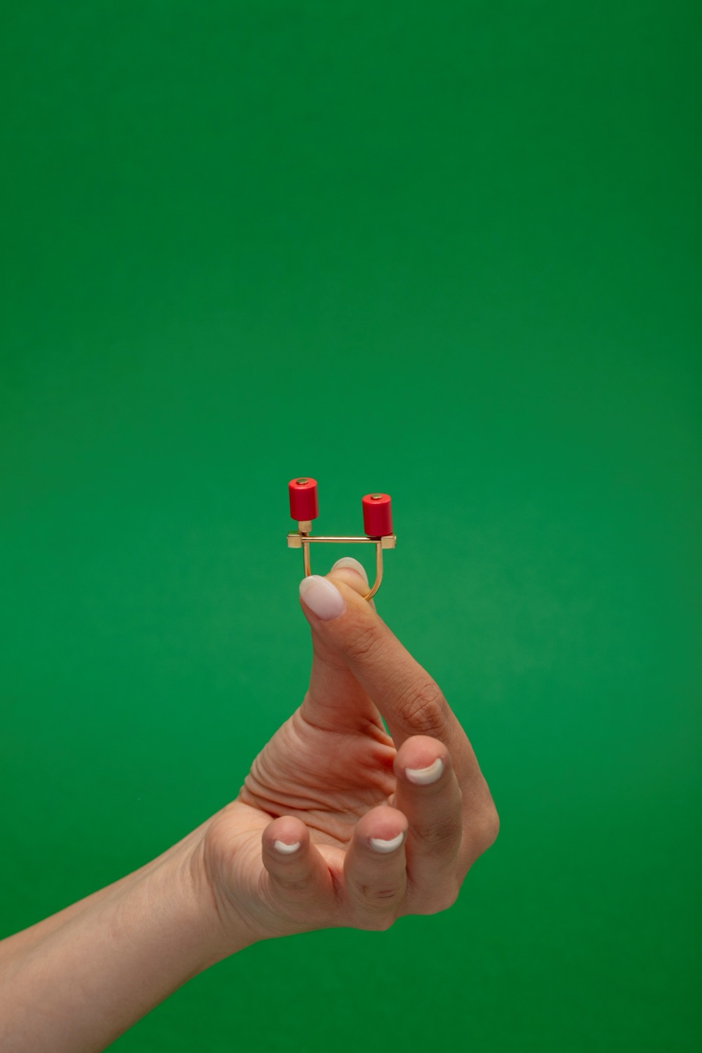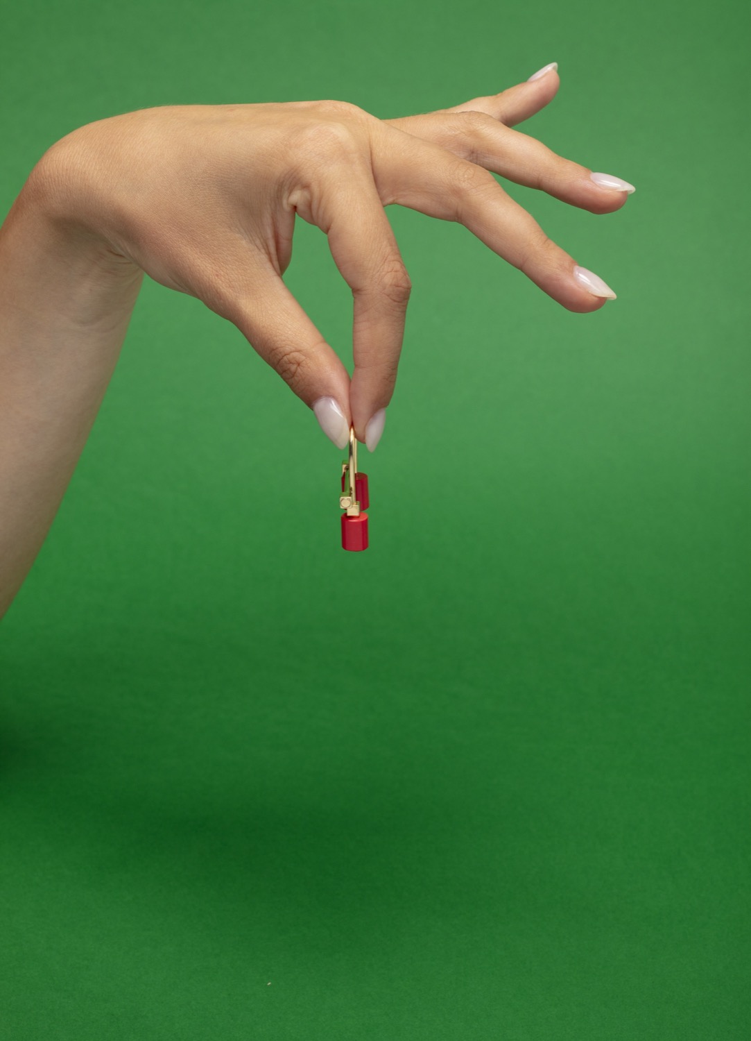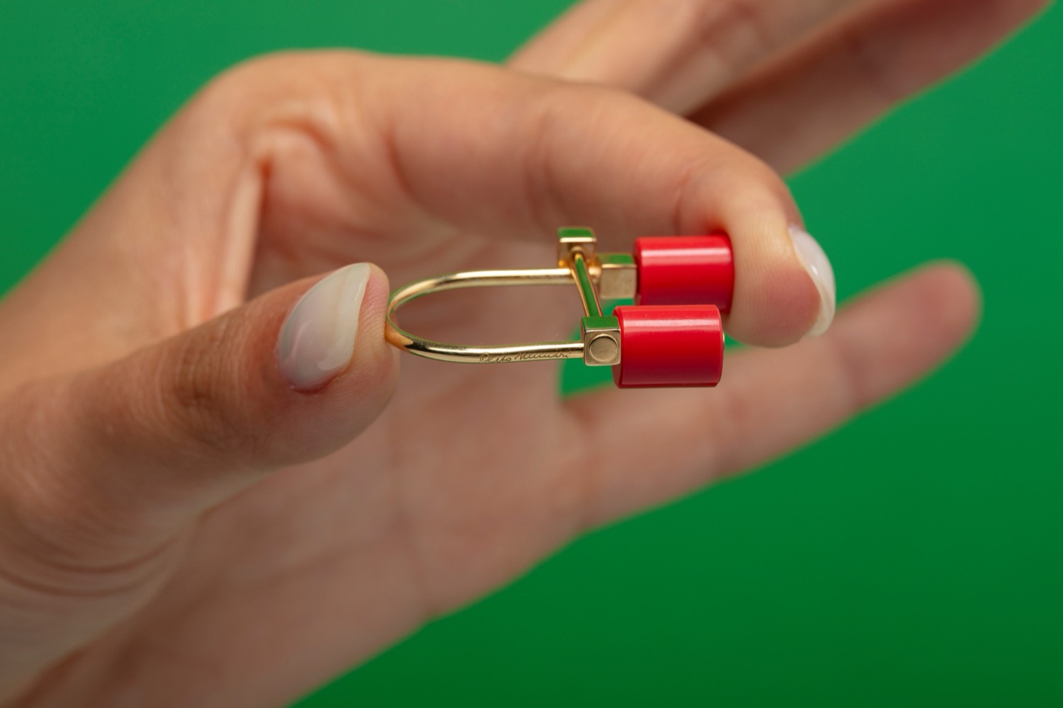 dorato, con due elementi cilindrici in pasta di corallo, firmato e punzonato.