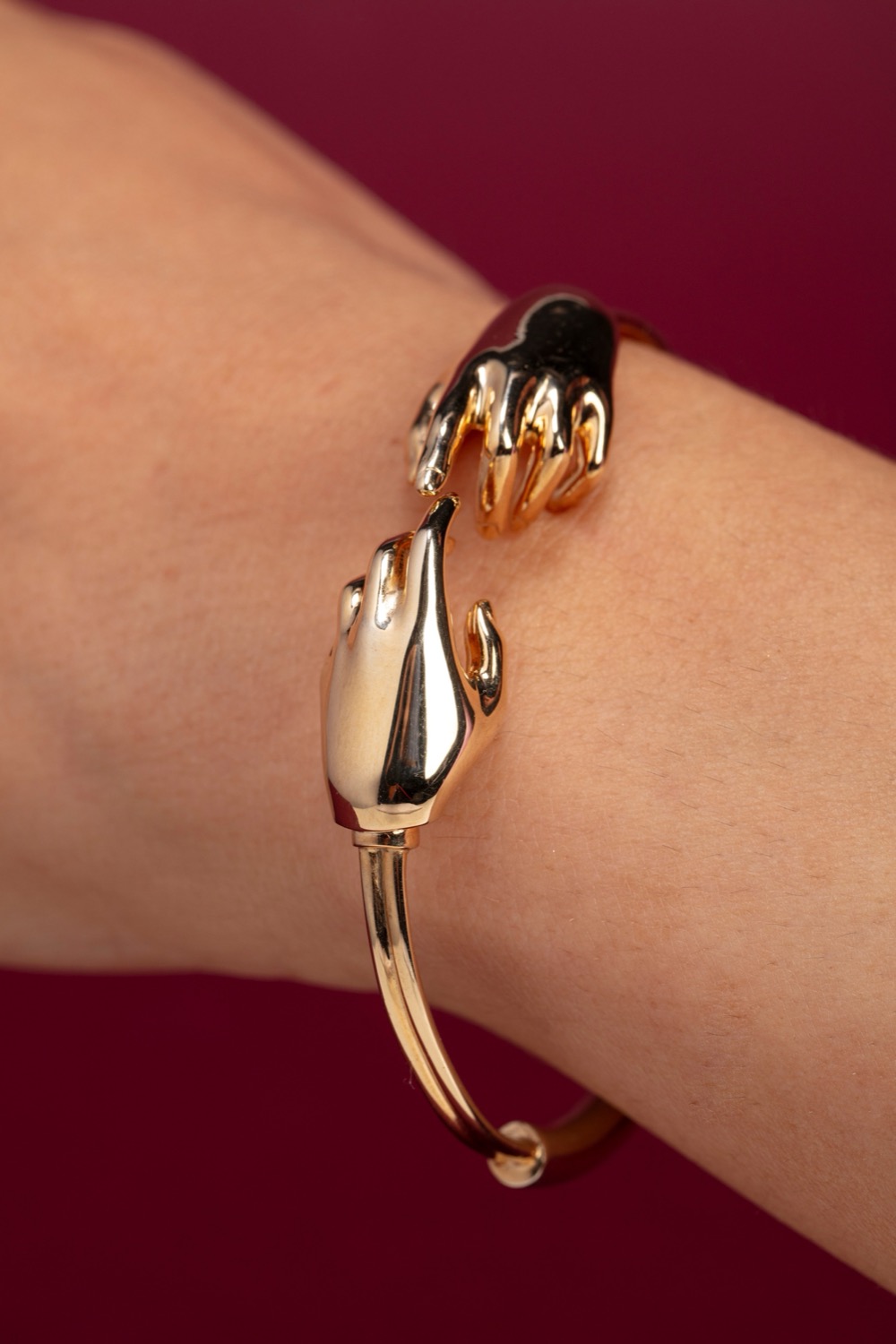 dorato, rigido, con mani contrapposte, apertura a molla, firmato e punzonato.