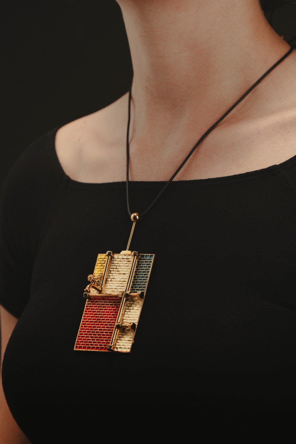 dorato, a riquadri con smalti policromi, tubi e rubinetto, firmato e punzonato.