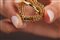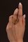 dorato, con griglia a cuore contenente una sfera nera e una sfera beige, firmato e punzonato.