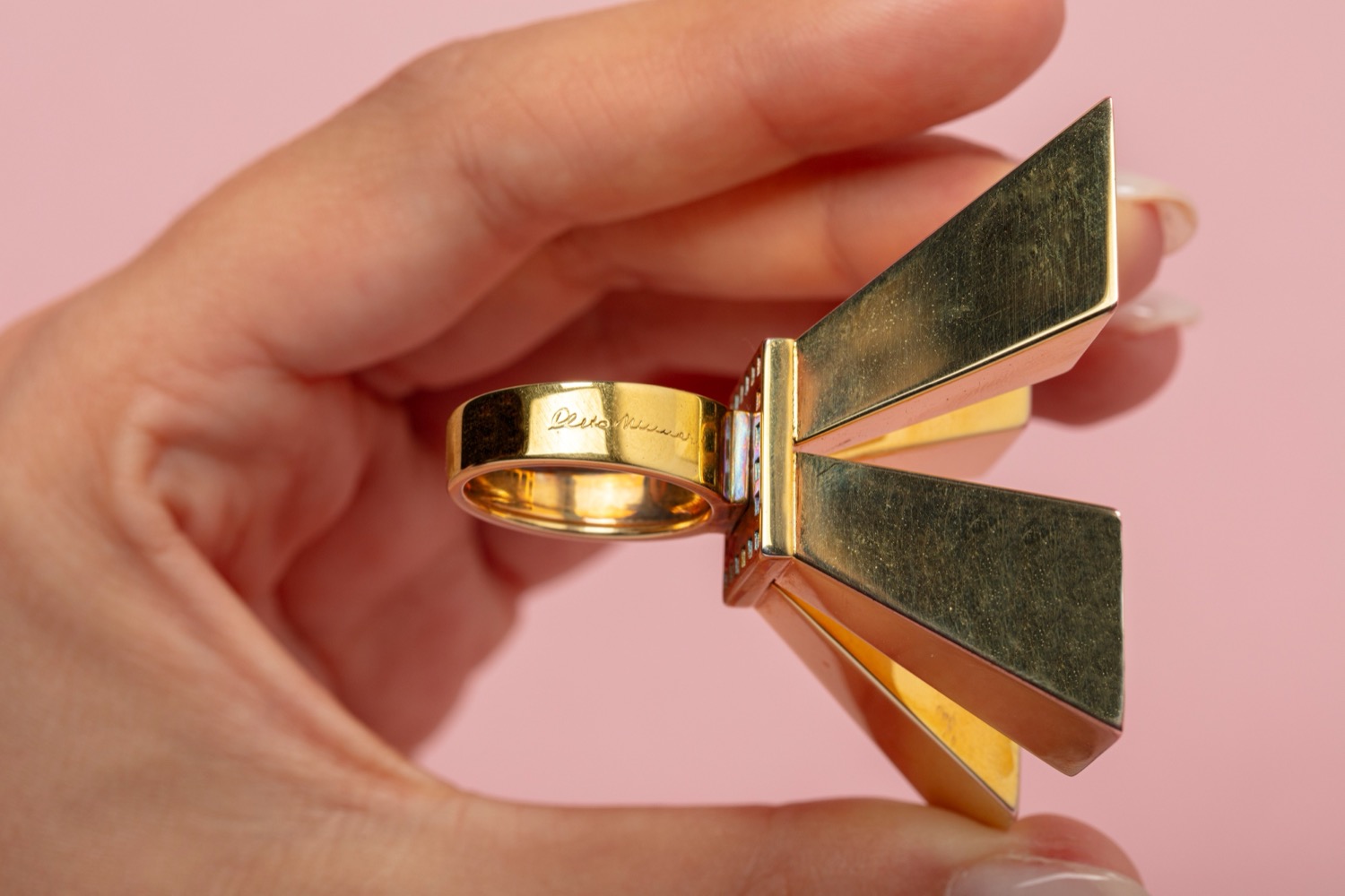 dorato, a quattro elementi, firmato e punzonato.