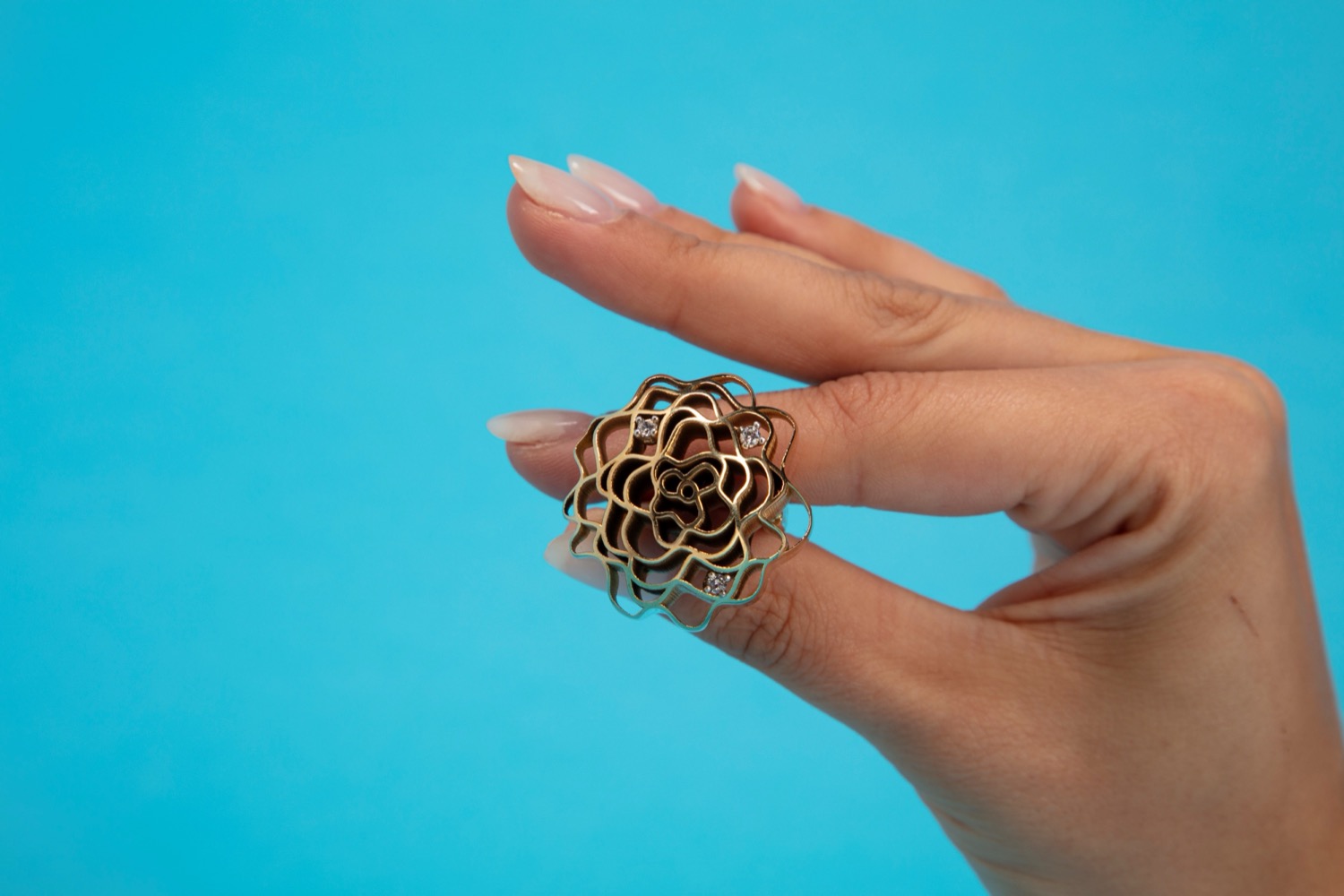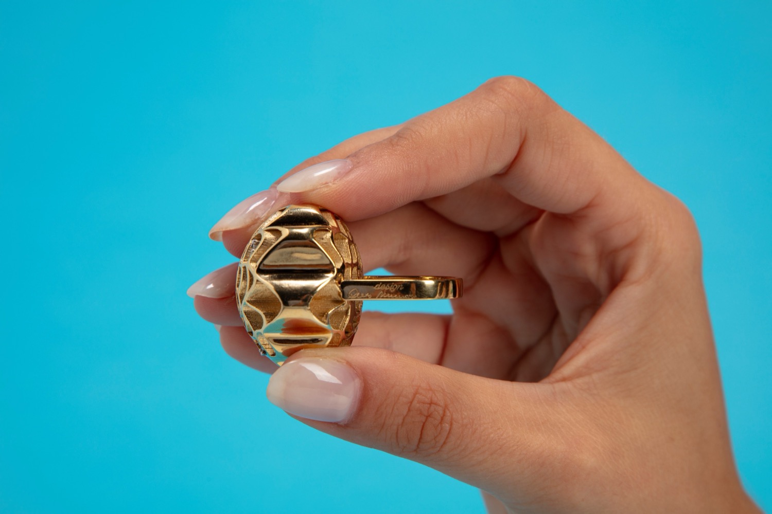 dorato, con zirconi taglio brillante, firmato e punzonato.