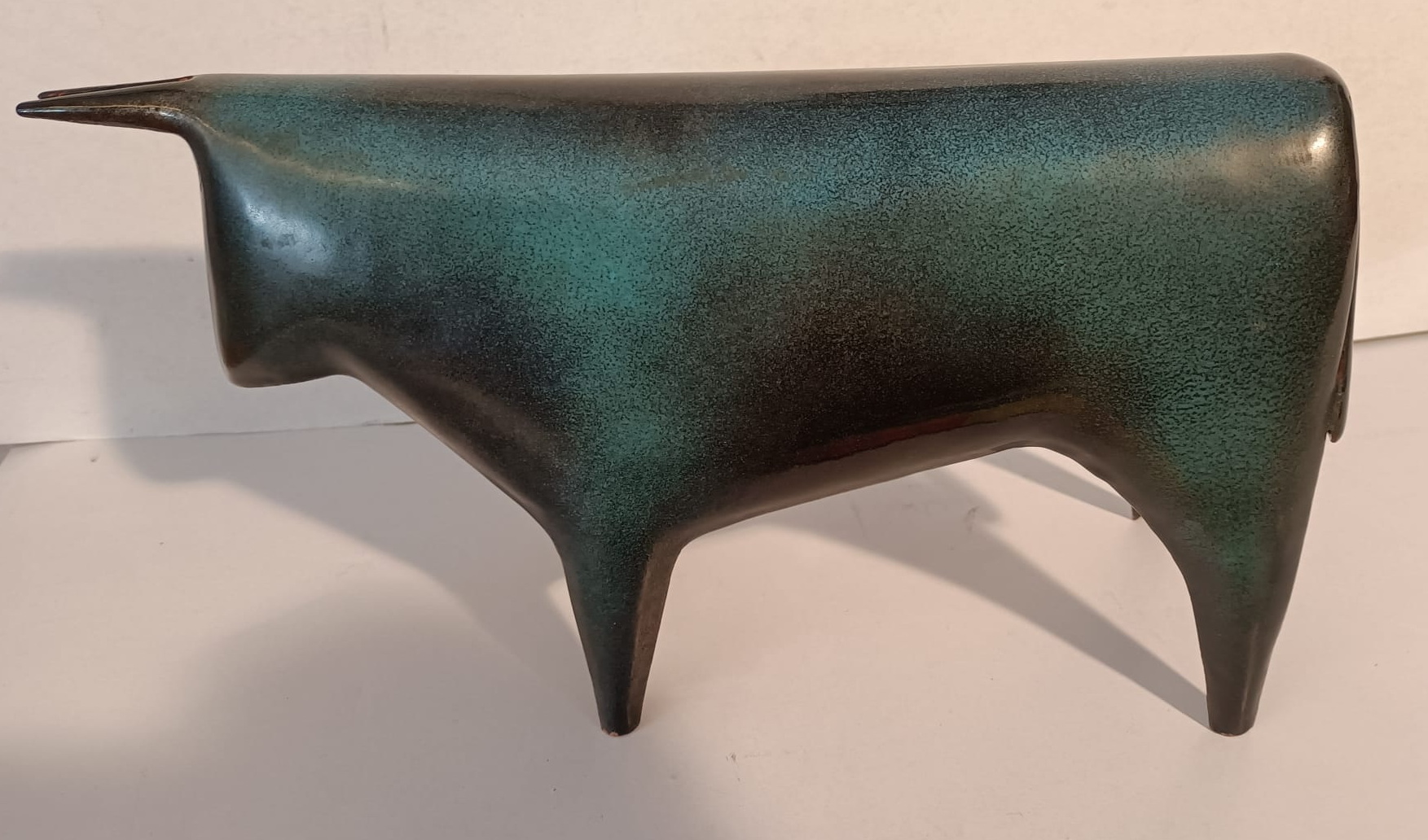 Scultura a forma di toro in rame smaltato di Gio Ponti per De Poli.