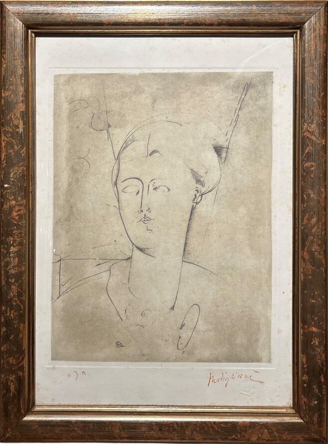 litografia 40 x 31 cm. Es. n. 47/99. Firmato in lastra. Timbri a secco: Archives legales A. Modigliani - Jeanne Modigliani; Acquatinta Eau Forte Etching Gravures; Il Cigno Stamperia d'Arte.
