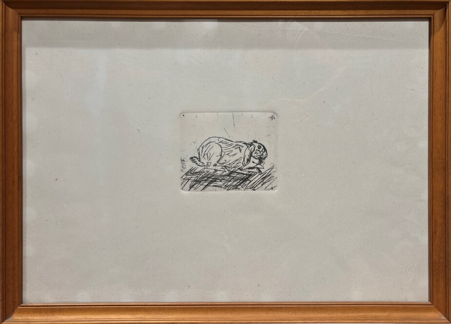 Dimensioni lastra: 9,5 x 12 cm. Timbro a secco "MZM" in basso a destra. In cornice. Antonio Ligabue (1899 - 1965)