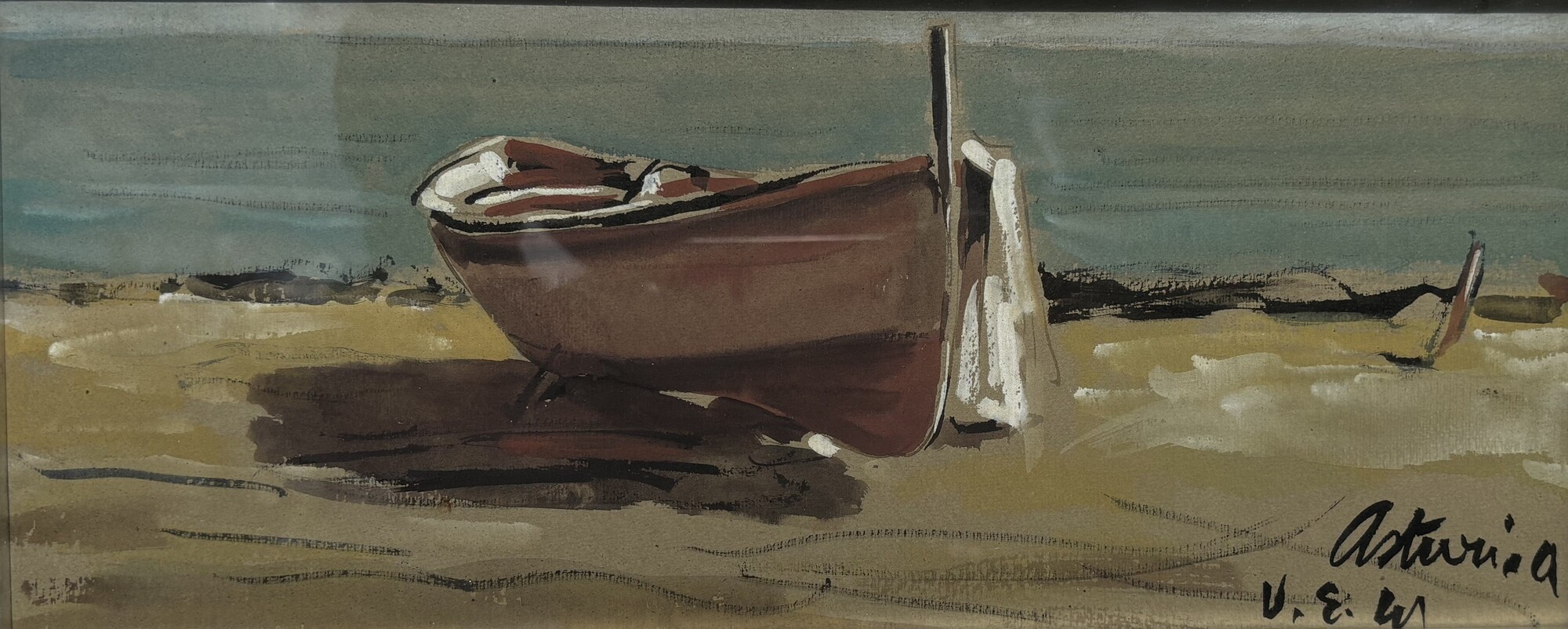 Firmato in basso a destra. Entro cornice Antonio Asturi (1904 - 1986) Barca a...