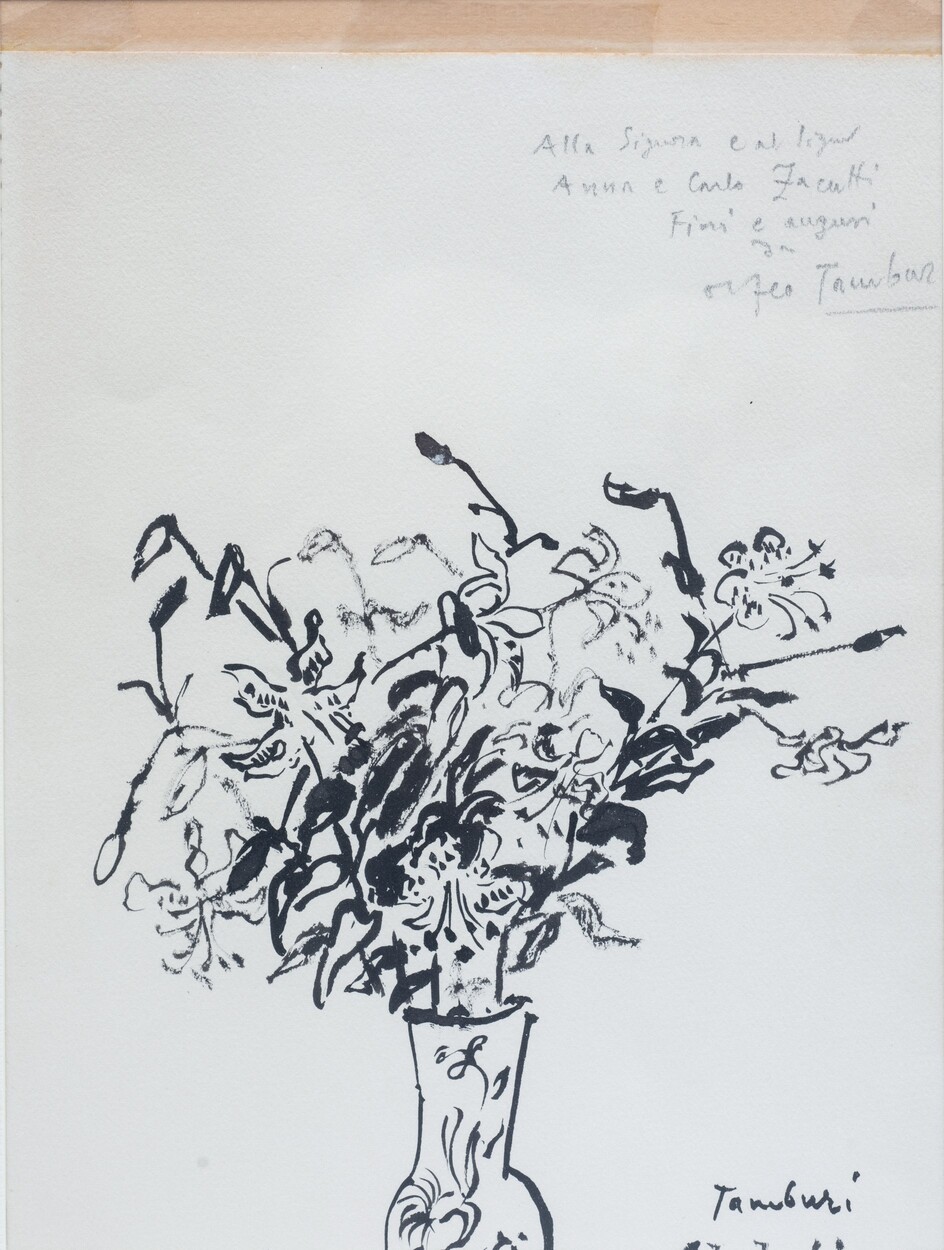 Firmato e datato in basso a destra. Dedicato a matita in alto a destra. Entro cornice Orfeo Tamburi (1910 - 1994)
