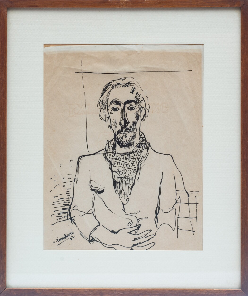 inchiostro su carta giallina 26 x 21 cm Firmato e datato in basso a sinistra. Entro cornice