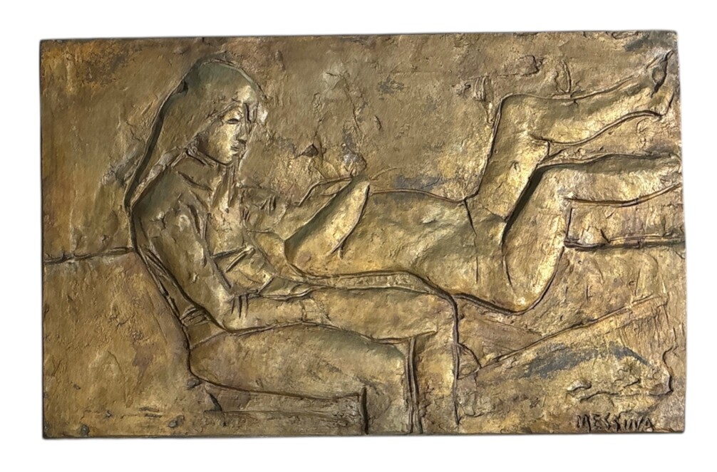 bassorilievo in metallo 21 x 34 cm Firmato in basso a destra "Messina"