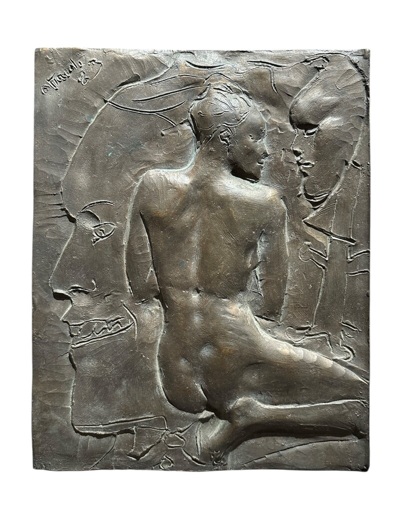bronzo 24 x 19 x 1 cm Bassorilievo in bronzo a patina bruna. Opera firmata e datata a incisione in alto a sinistra "Attardi 83".