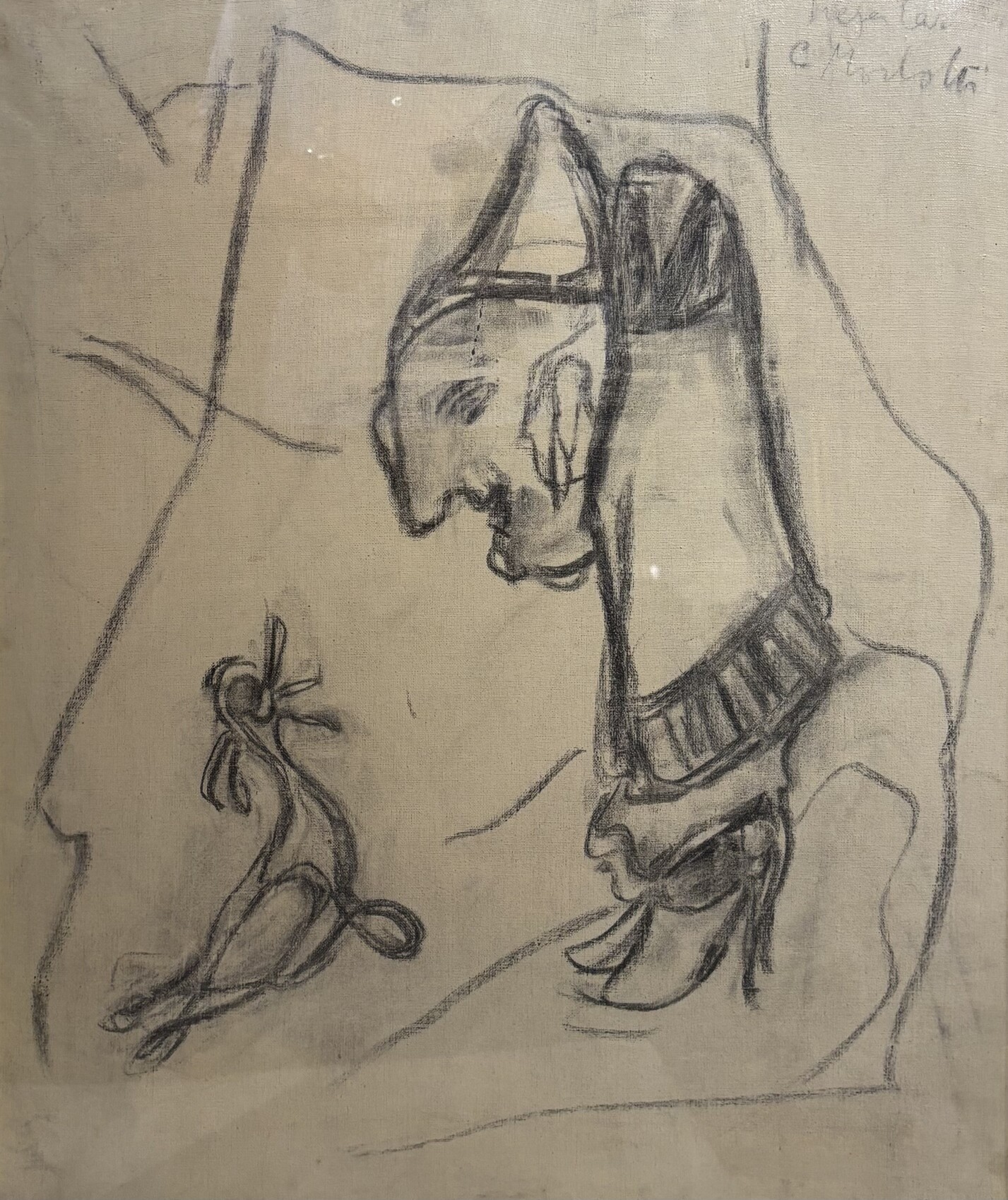 carboncino su tela 50 x 60 cm Entro cornice.