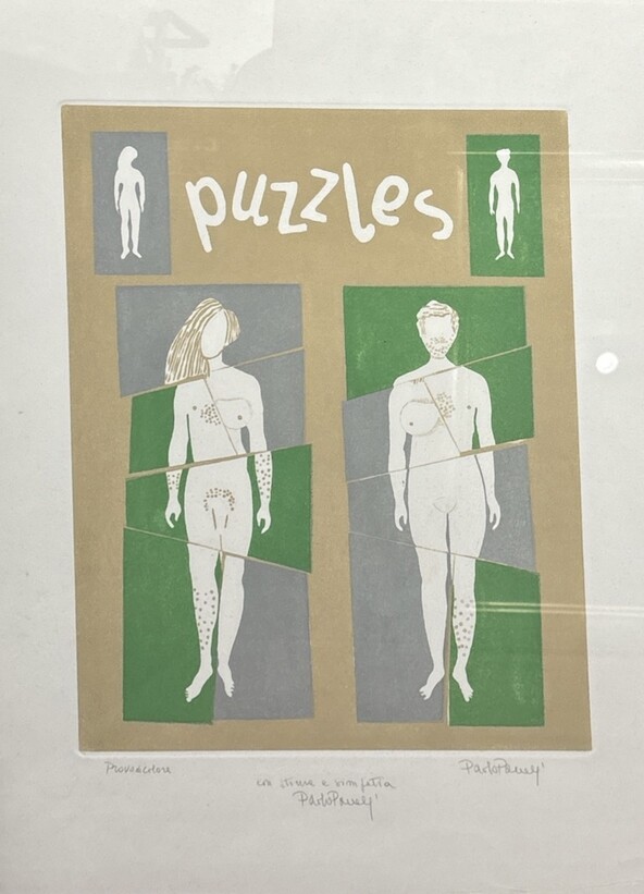PaolomPaneli, "Puzzles", 63 x 46 cm, es. n. Prova di colore, firma in basso a destra. In cornice.
