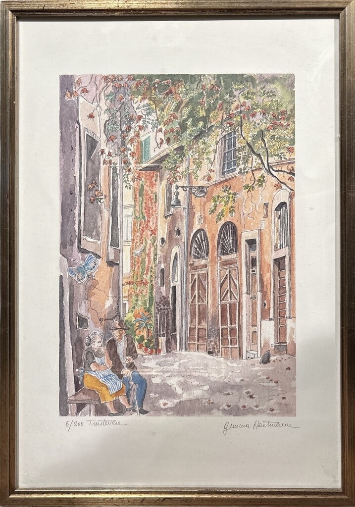 "Trastevere", es. 6/200, 49 x 34 cm,  firma indistinta in basso a destra. In cornice.