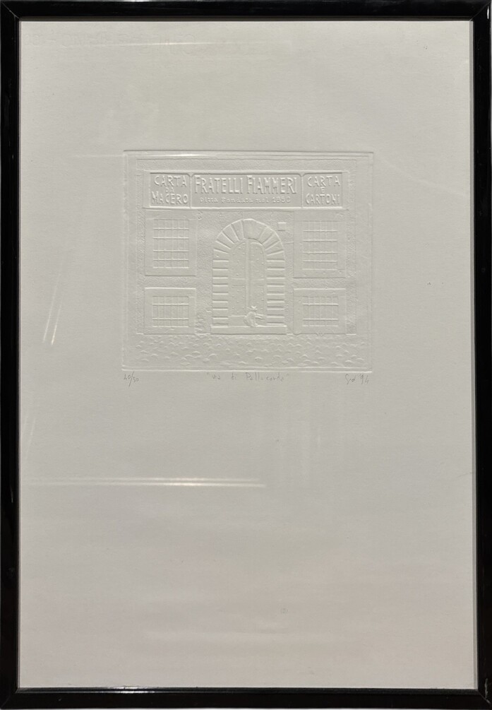 "Via della pallacorda, es. n. 40/50, 48 x 33 cm, 1994, firma indistinta in basso a destra. In cornice.