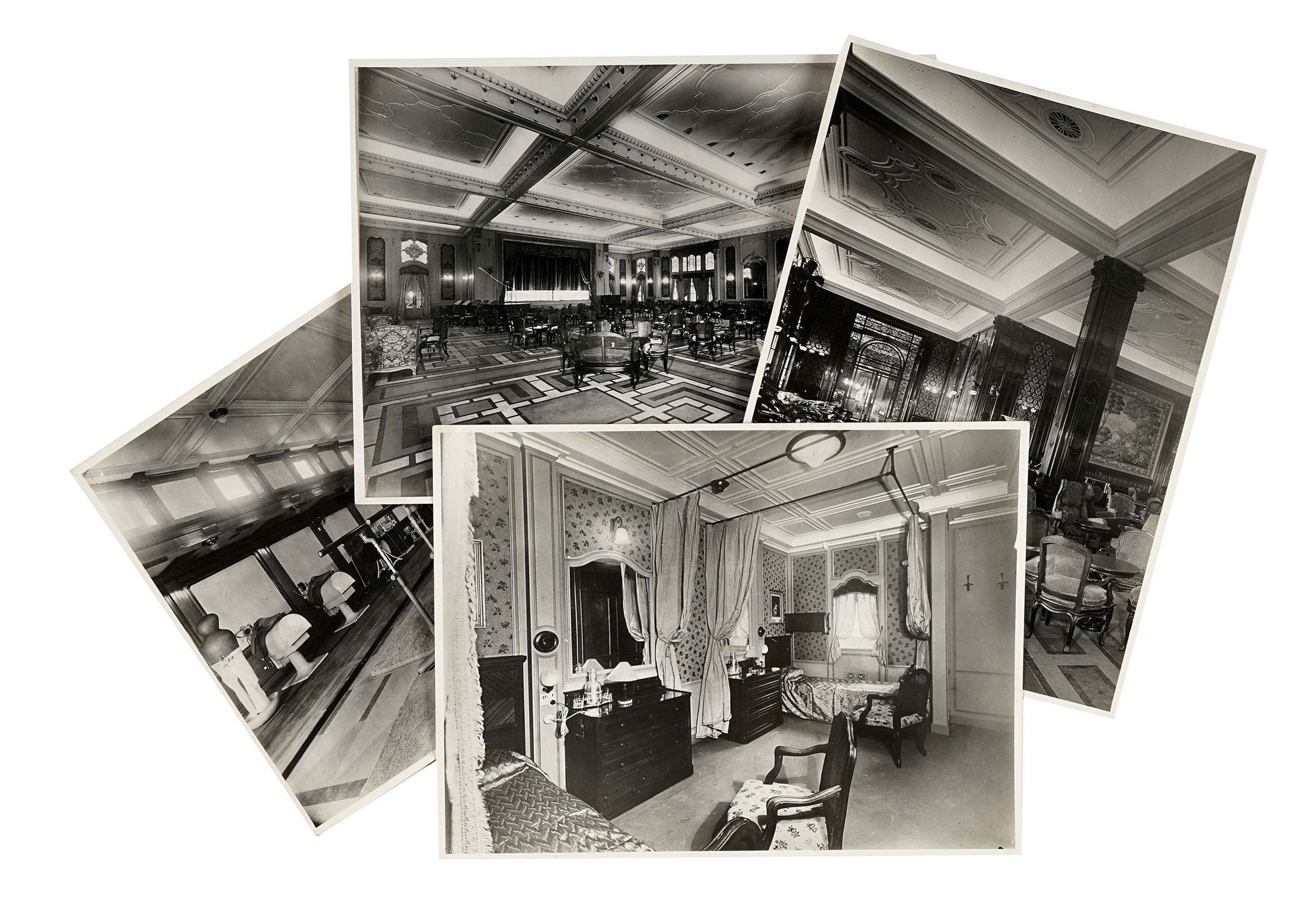 Sei scatti professionali in b/n realizzati dal fotografo genovese Mario Agosto, come da stampigliature sul retro. Perfette condizioni. Dimensioni 240x180 mm. (7) Le 6 fotografie sono state scattate a bordo del Rex, pochi giorni prima dell'entrata in servizio. Ritraggono: una elegante camera di prima classe; il sontuoso salone centrale; la sala delle feste con la caratteristica doppia fila di vetrate frontali e il pavimento in marmo; la sala di ginnastica; la passeggiata del ponte lance; la cappella di bordo. Una foto ritrae Guglielmo Marconi con un ufficiale, accanto ad antenne radio. Mario Agosto è stato il fotografo personale di Marconi e ha fotografato vari personaggi illustri dell'epoca e molti grandi transatlantici italiani. Il Rex entrò in servizio nel 1932 per la compagnia Italia Flotte Riunite ed è l'unico transatlantico italiano che si è aggiudicato il Nastro Azzurro, attraversando l'atlantico ad una media di oltre 28 nodi.