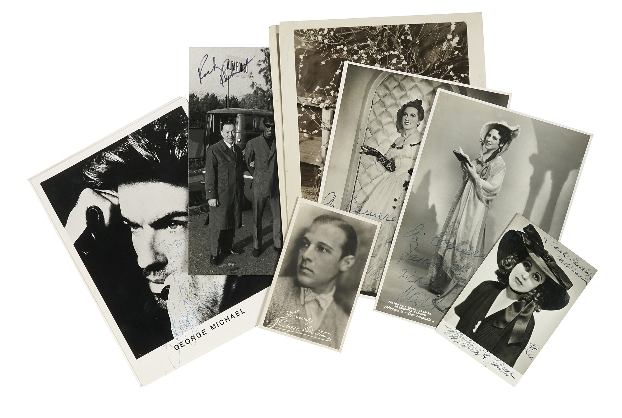 Raccolta di 31 tra lettere, biglietti, fotografie e fotocartoline autografate di cantanti e musicisti, attori. XX secolo.