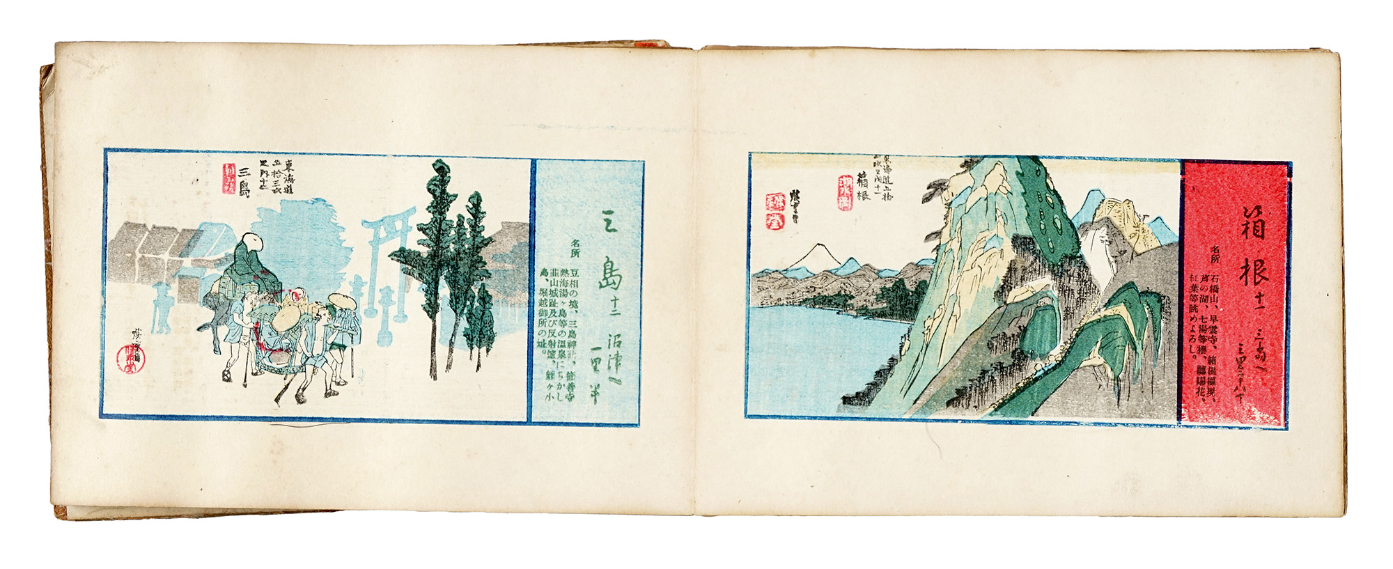 Hiroshige Utagawa I (Andō Tokutarō), Le 53 Stazioni del Tokaido (Tokaido Gojusan-Tsugi). Edizione popolare di era Meiji dei famosissimi pannelli xilografici del maestro Hiroshige.