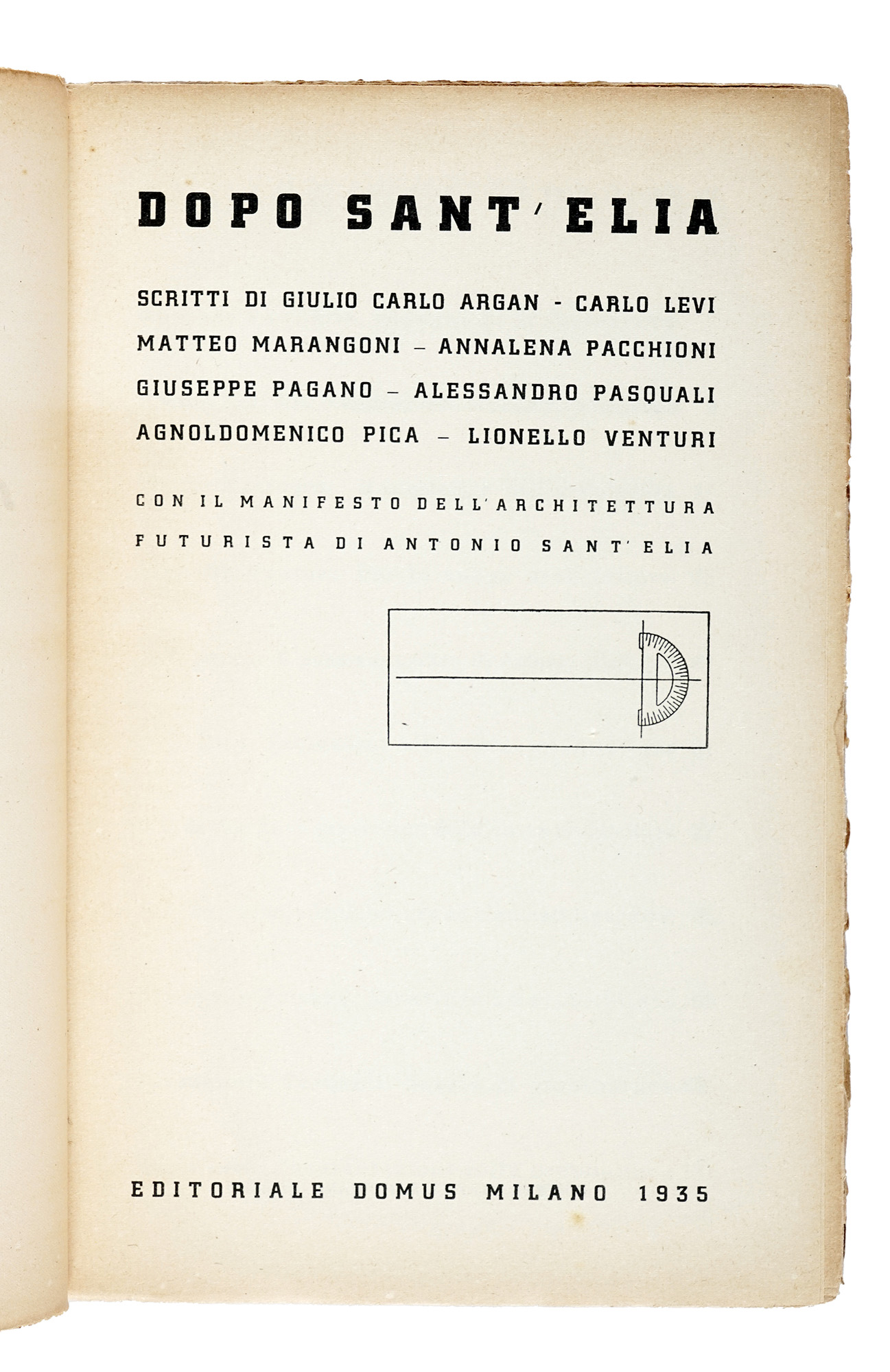 Dopo Sant'Elia. Milano: Editoriale Domus, 1935. In-8° (mm 230x150). Con 1...