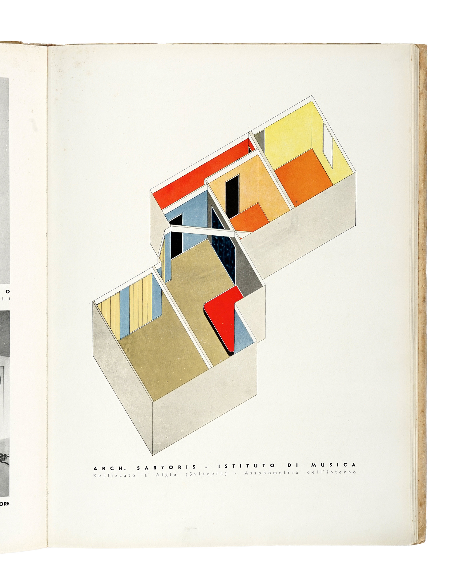 In-4° (mm 325x240). Con numerose fotoriproduzioni in nero, anche a piena pagina, e tavole a colori nel testo. Legatura editoriale in cartonato rigido, con fotomontaggio su fondo bianco e bleu di Guido Fiorini e titoli in rosso al piatto. Esemplare internamente allentato, con macchie ai piatti. SI AGGIUNGE: Sartoris Alberto, Gli elementi dell'architettura funzionale. Milano: Ulrico Hoepli, 1932. (2) I OPERA: Prima edizione di questa importante monografia sulle avanguardie architettoniche dei primi decenni del XX secolo e gli ambienti da esse ideati. II OPERA: Prima edizione del testo fondamentale dell'architettura di inizio 900, con nota introduttiva di Le Corbusier.