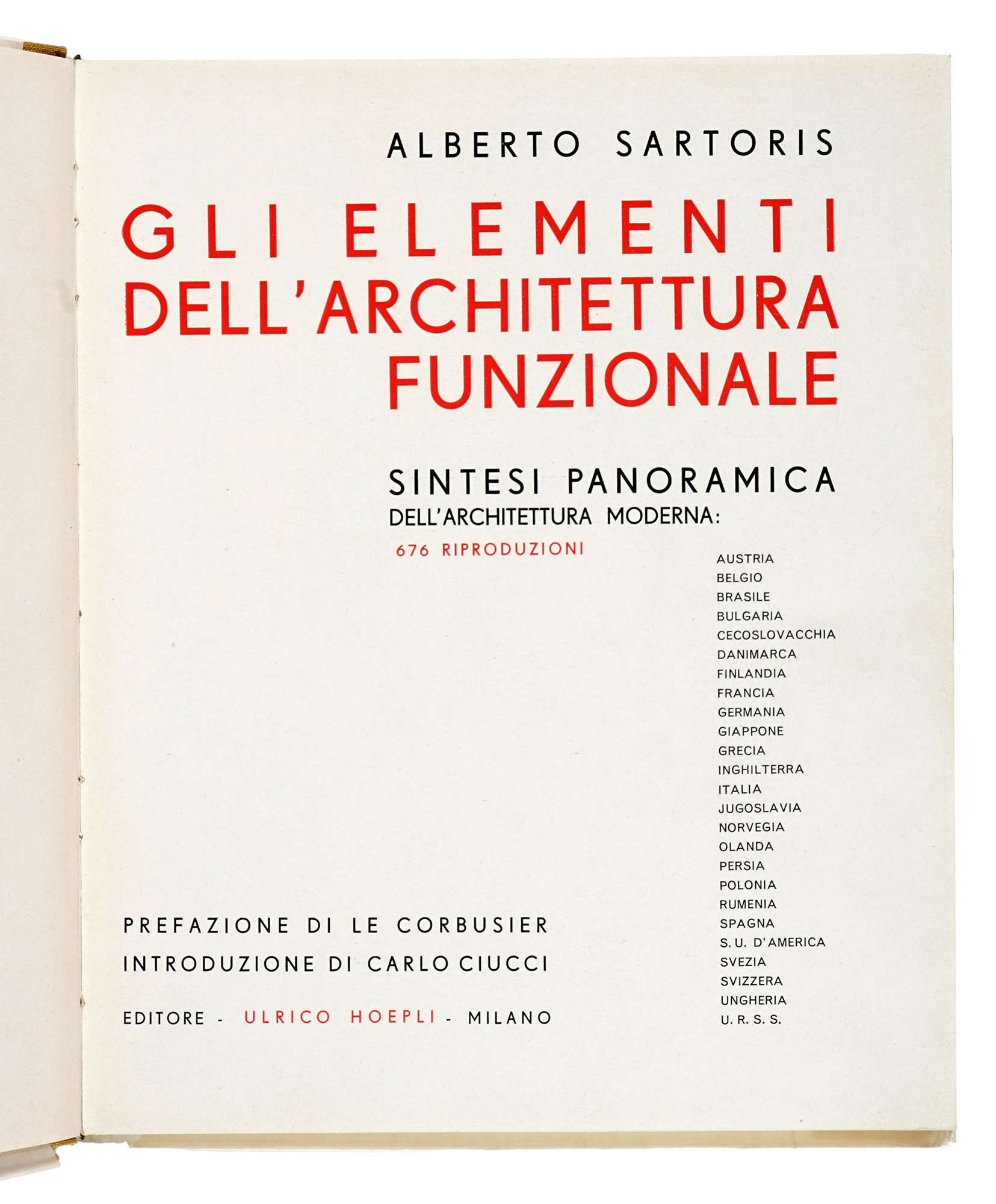Sartoris Alberto, Gli elementi dell'architettura funzionale. Prefazione di Le Corbusier... Milano: Ulrico Hoepli, 1932.
