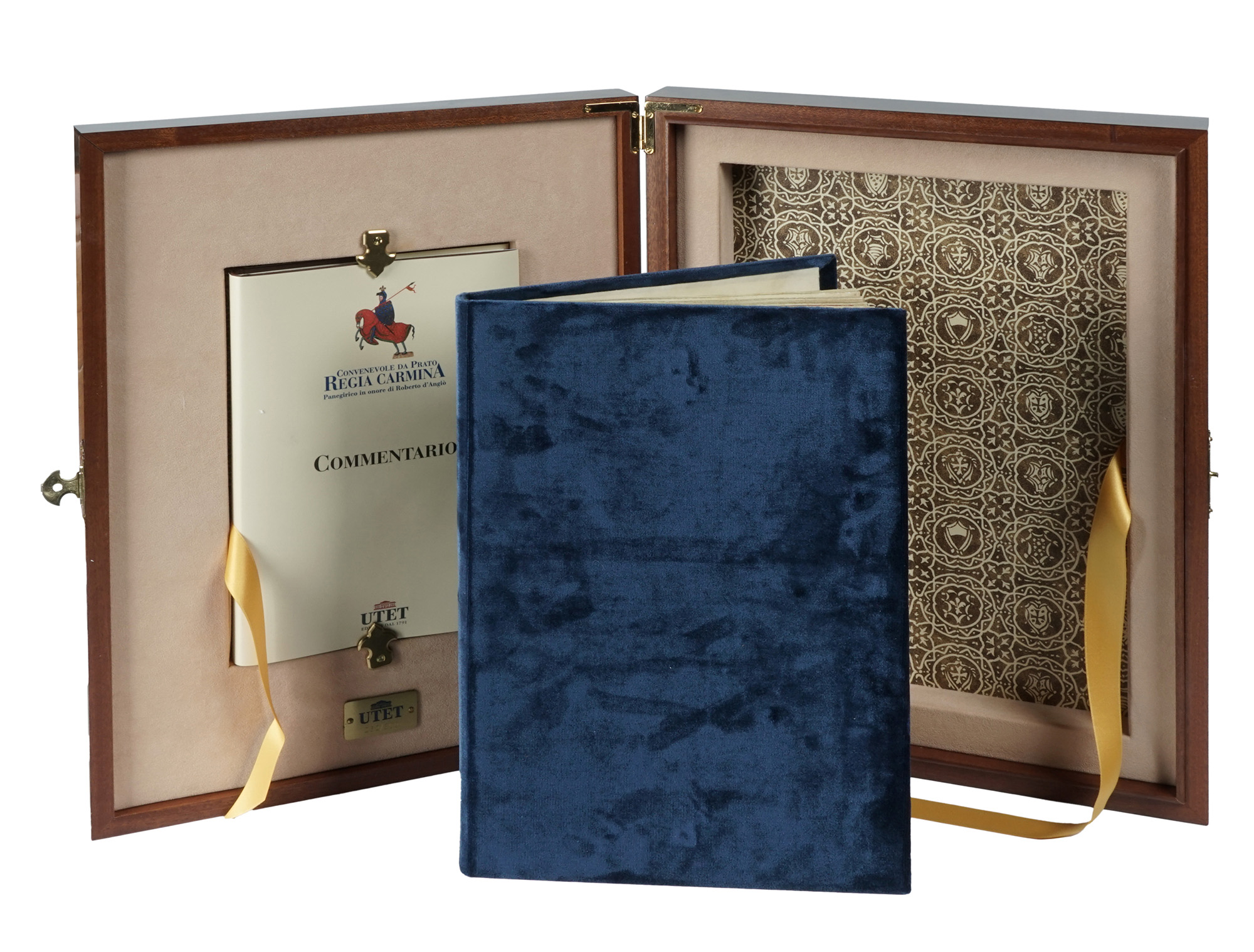 1 volume in-4° (mm 379x235) contenente il facsimile dell'opera in elegante legatura in velluto blu e 1 volume di Commentario in-8° (mm 270x175). Il tutto perfettamente conservato entro splendido cofanetto in radica, con piatto posteriore in pelle e fermaglio dorato. Tiratura in 300 esemplari numerati. (2) Riproduzione dettagliata a colori del codice trecentesco dell'opera di Convenevole in cui la città di Prato si rivolge al re di Napoli, Roberto d'Angiò, mettendosi sotto la sua protezione e deplorando la situazione politica italiana. Peculiare l'apparato iconografico, realizzato da Pacino da Buonaguida, con miniature di notevoli dimensioni.