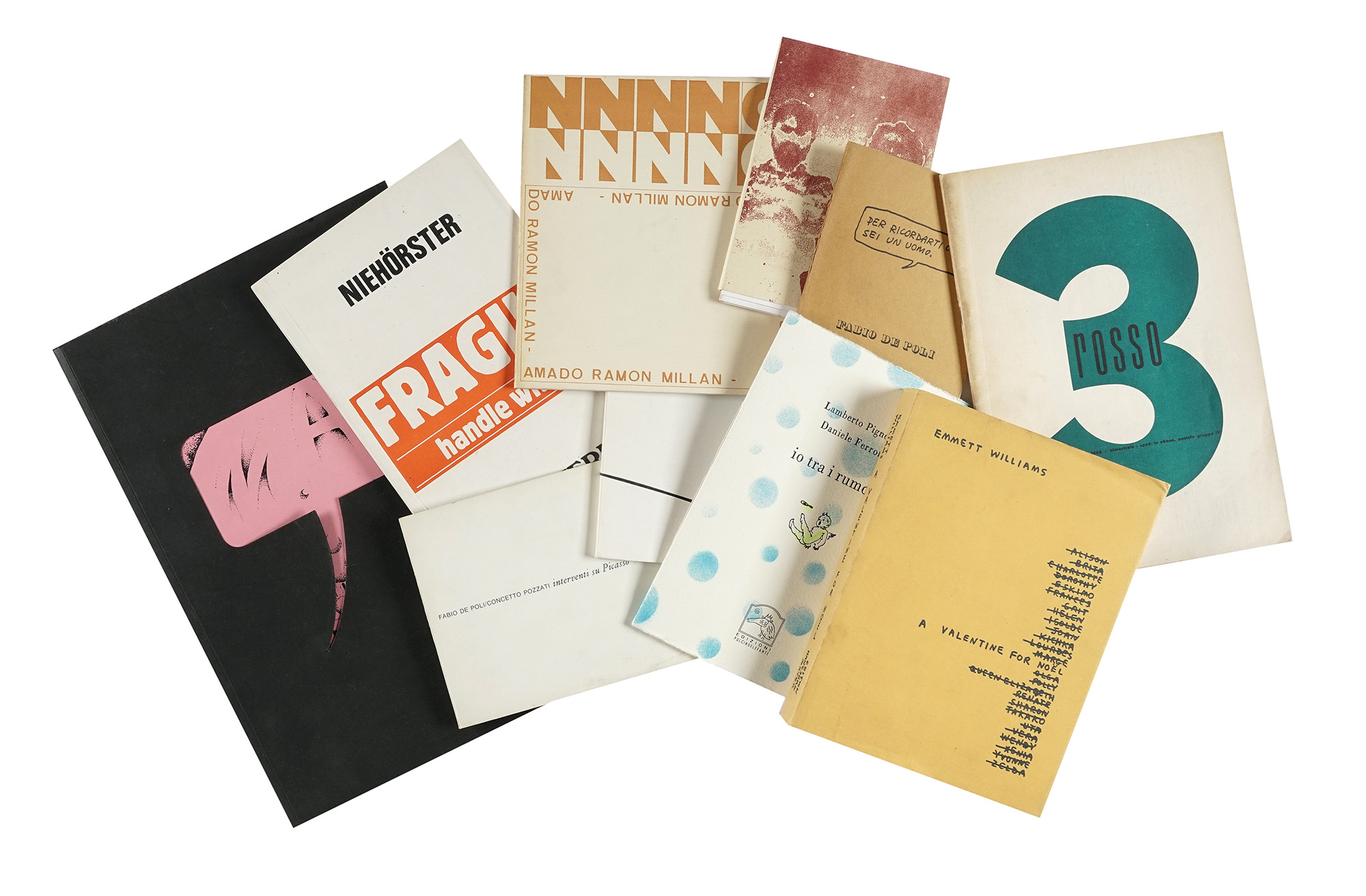Compongono il lotto: 1) Accame Vincenzo, Ricercari. Milano: Edizioni Tool, 1968; 2) Id., Prove di linearità. Milano: Edizioni autonome, 1970; 3) Jochen Gerz, Agentzia. Numero double 11/12. Paris: Agentzia, 1969; 4) Manifestazioni Artistiche Fiorentine. Firenze: Techne, 1971; 5) Millan Amado Ramon, Nnnno. Madrid: Grafica San Enrique, 1969; 6) Pignotti Lamberto, Io tra i rumori. Osnago: Pulcinoelefante, 2016; 7) Miccini Eugenio, Teatro. Quaderni di Tecnhne. Firenze: Techne, 1970. Elenco completo disponibile su richiesta. (19)