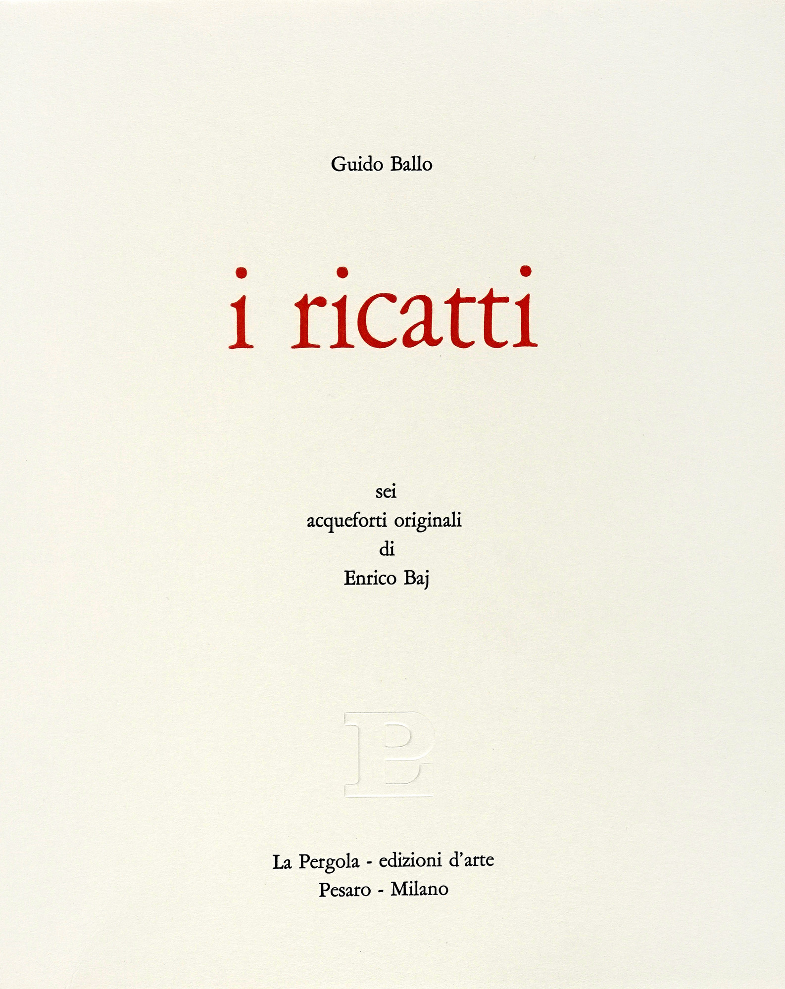 Ballo Guido, I ricatti. Milano, Pesaro: La Pergola Edizioni d'Arte, 1969.