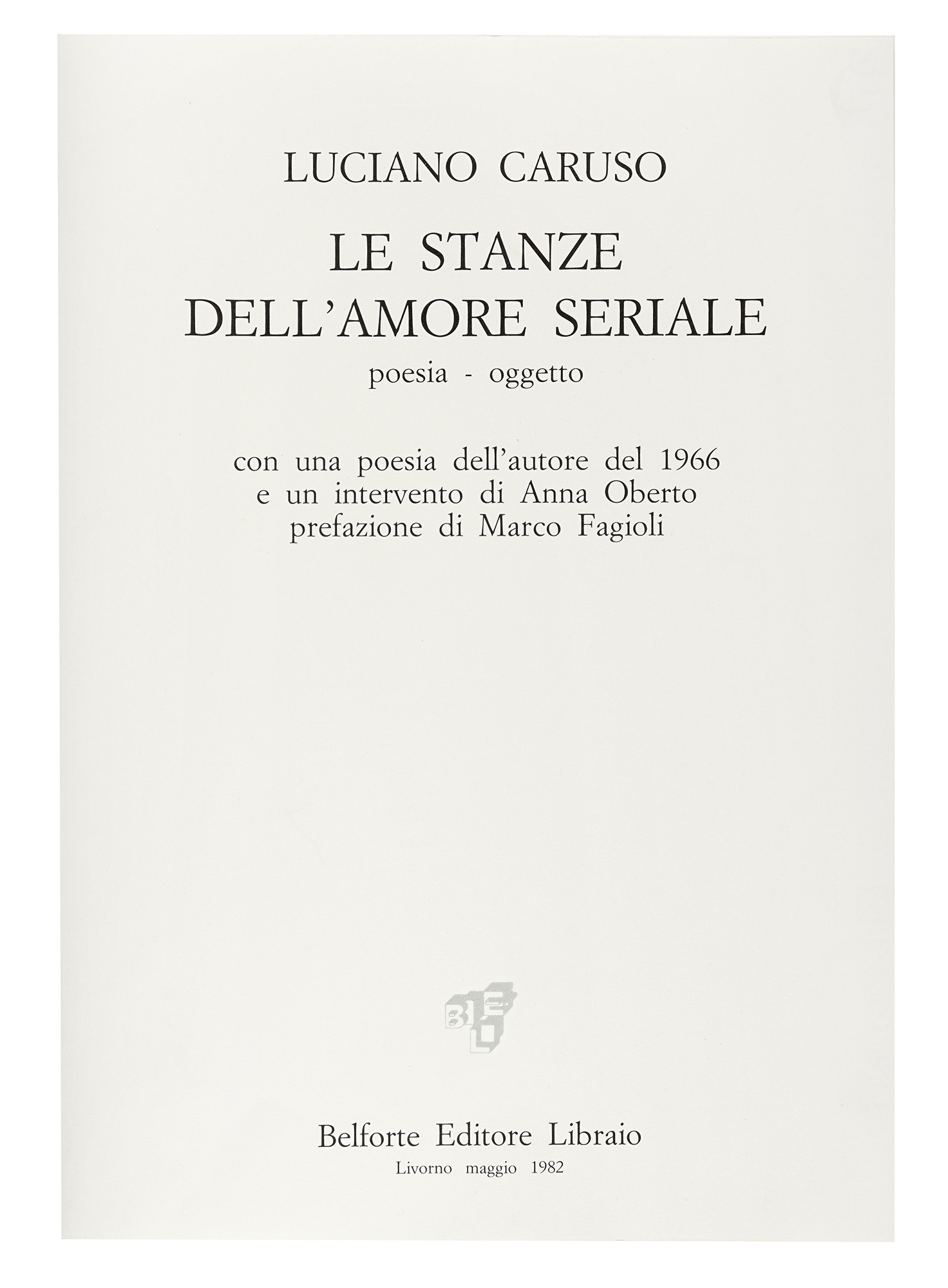 Caruso Luciano, Le stanze dell'amore seriale. Livorno: Belforte, 1982....