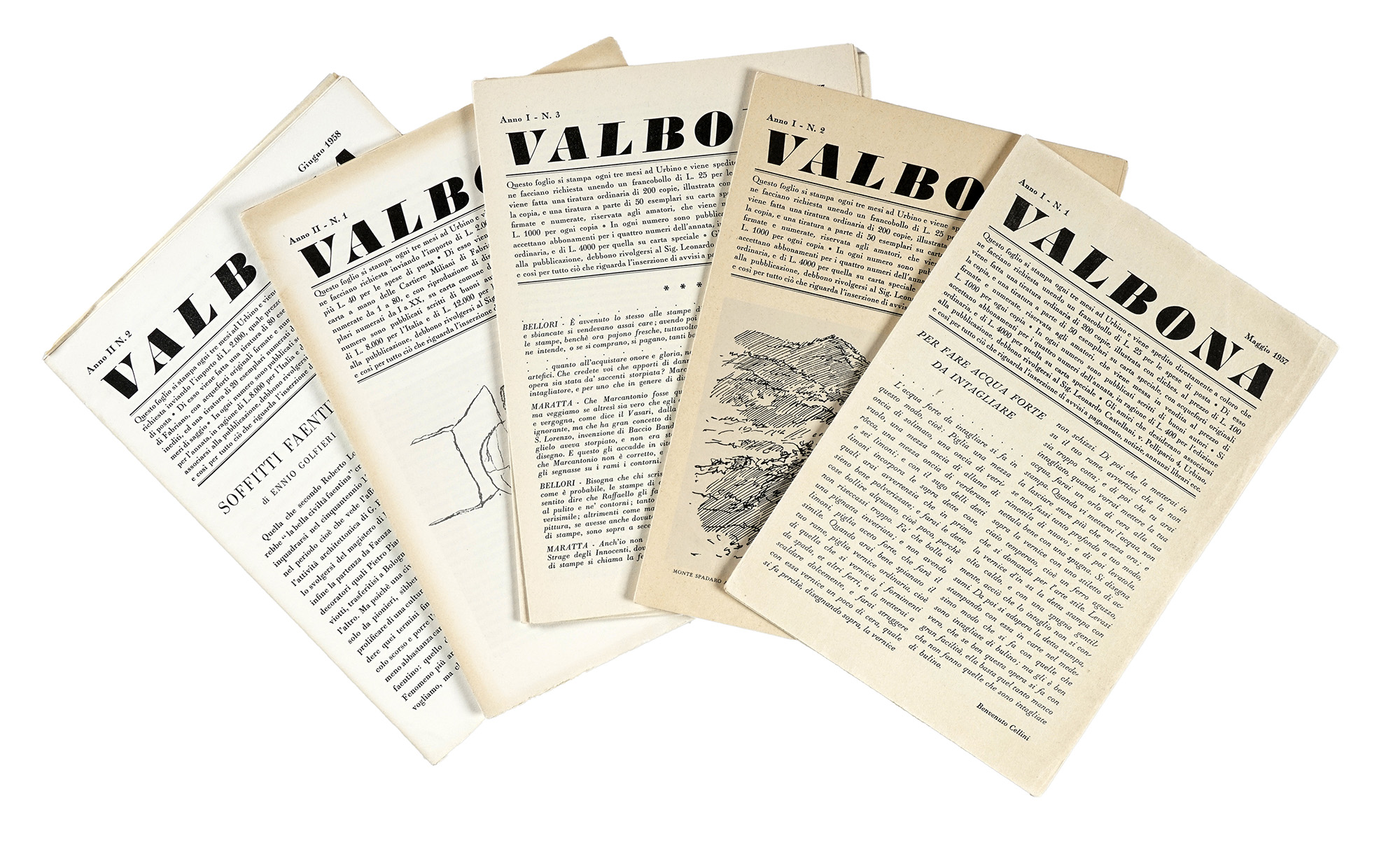 Castellani Leonardo, Valbona. Anno I, n. 1 - Anno 5, n.4. (Tutto il pubblicato). Urbino: s.e., Maggio 1957 - Dicembre 1961.