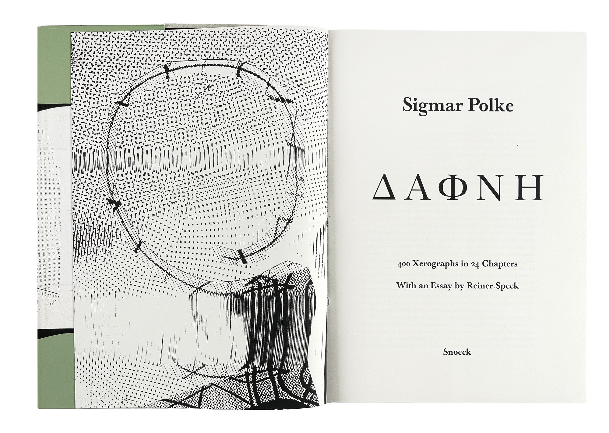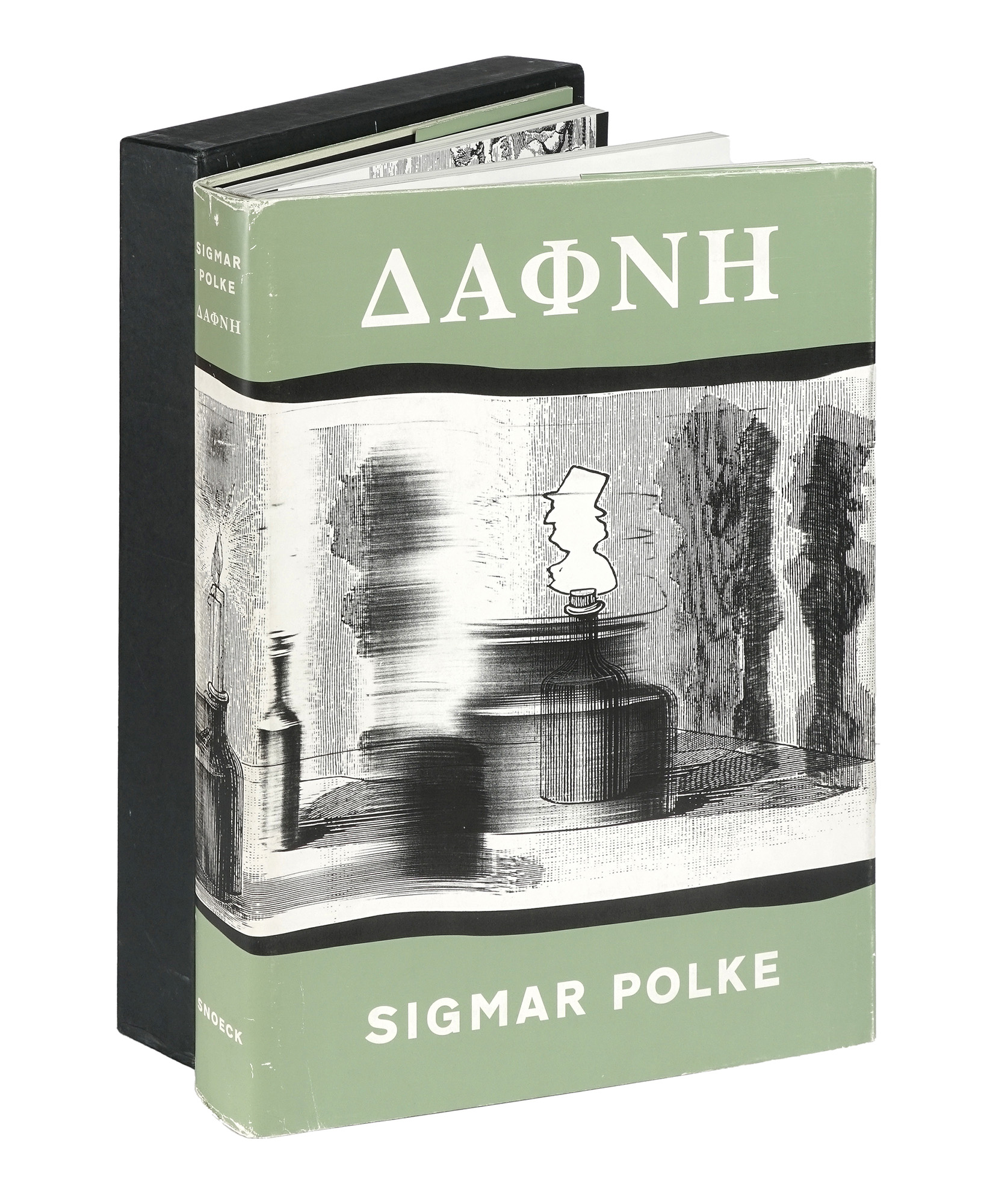 In-folio (mm 420x300). Esemplare 400 xerografie a piena pagina di Sigmar Polke, suddivise in 24 episodi. Legatura editoriale in piena tela con titoli su tassello al dorso; con sovraccoperta illustrata e cofanetto originale. Entrambi presentano segni di usura. Tiratura di 1.000 copie firmate a matita dall'Artista. (1) Il titolo dell'opera, che fa riferimento alla ninfa che fugge dall'amore di Apollo, assume qui una dimensione metaforica riferita alla natura frammentata e molteplice delle immagini, specchio del processo creativo polkiano.