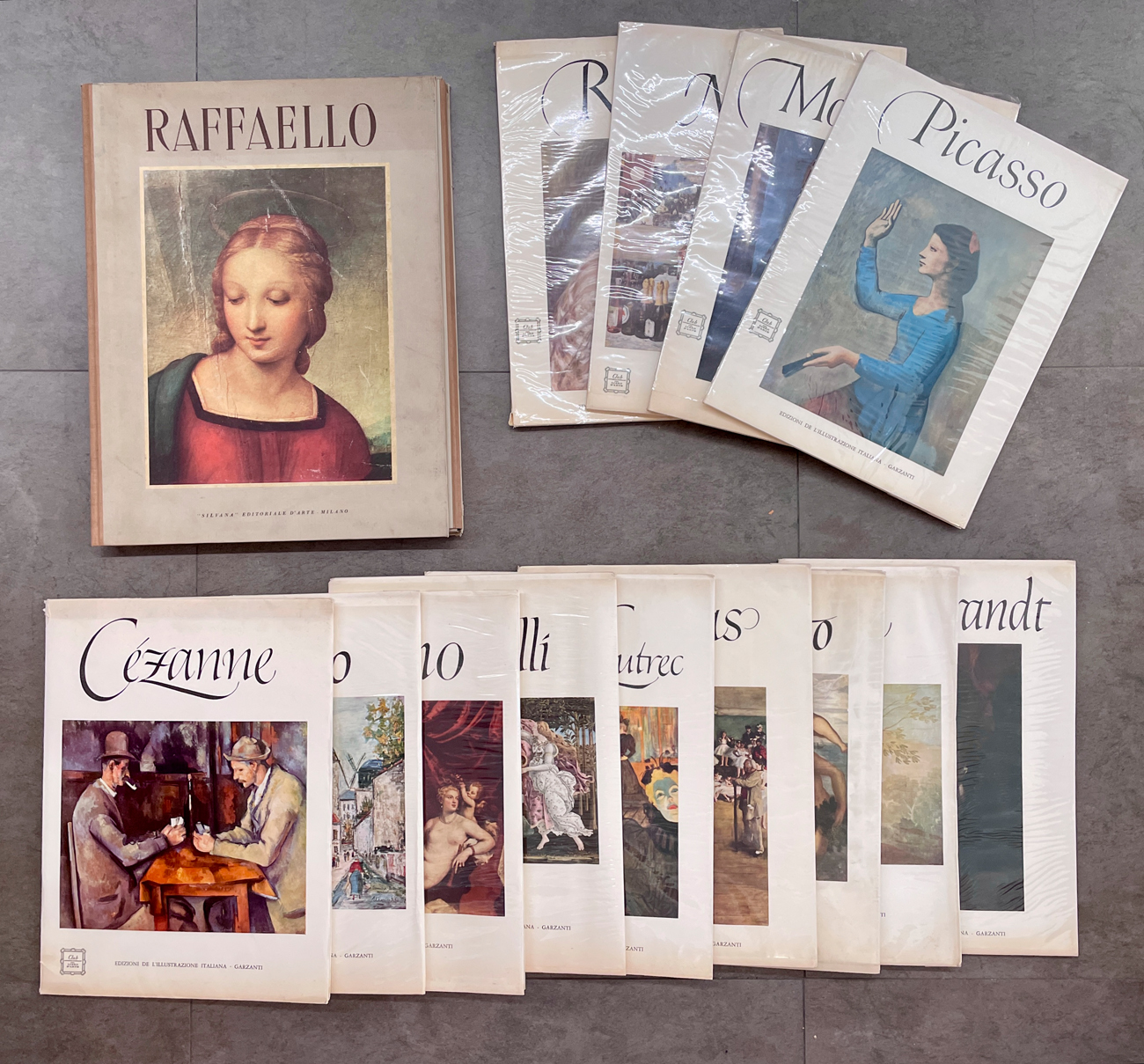 Lotto unico di numerose riviste edite nel 1961 a cura di Edizioni de l'Illustrazione Italiana, Garzanti, relative ai seguenti artisti: Cézanne, Utrillo, Tiziano, Botticelli, Toulouse Lautrec, Degas, Rembrant, Goya, Tintoretto, Modigliani, Picasso, Manet, Renoir