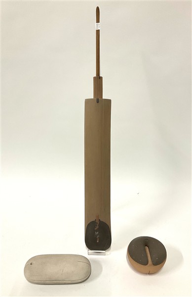 Lotto di tre sculture composite in terracotta. Italia, anni '80. Firmate. (l max cm 66) (difetti e restauri)