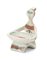 Piccola scultura svuotatasche con figura antropomorfa primitiva in ceramica invetriata e decorata in verde, arancio e bruno su fondo bianco. Vietri sul Mare, anni '40/'50. Firmata sotto la base "GAMBONE ITALY" e con il simbolo grafico dell'asinello. (h cm 13)