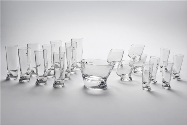 Lotto composto da un secchiello, quattro bicchieri da cognac, cinque da liquore e dieci da whiskey della serie "Touch Glass". Manifattura Colle Cristalleria, Colle Val d'Elsa, 1991. (lievi difetti)