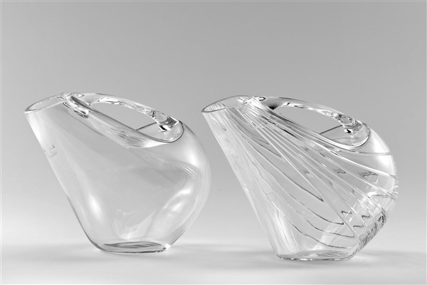 Due caraffe in cristallo delle serie "Askos" e "Askos tagliata". Manifattura Colle Cristalleria, Colle Val d'Elsa, anni '90. (h cm 18)