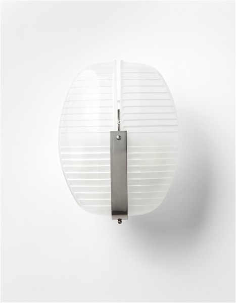 Lampada da parete modello "Lambda". Produzione Artemide, Milano, 1961. Metallo nichelato e vetro acidato sulla superficie interna. (h cm 25)