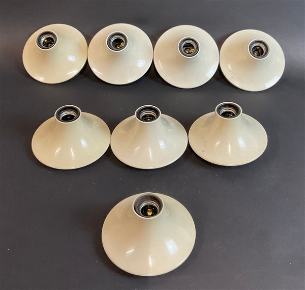 Lotto di otto lampade da parete/soffitto modello "Teti". Produzione Artemide, Milano, anni '70. Plastica bianca. Marcate sotto la base. (d cm 14)